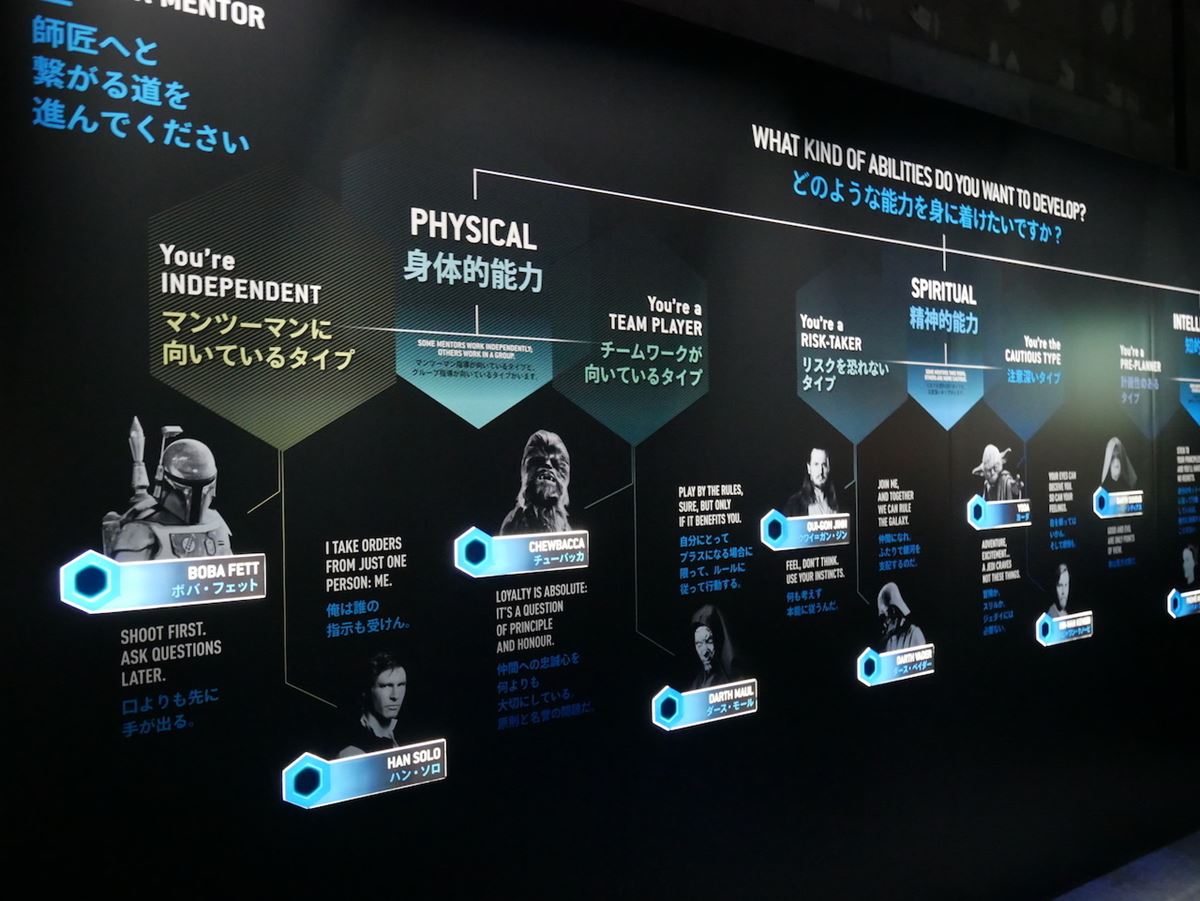 「アイデンティティを形成する3つの観点——どこで生まれ、誰にどのように育てられ、そして、成長後にどのような選択をするのか——から展示を構成しています。そして、アナキン・スカイウォーカーとルーク・スカイウォーカーというふたりの主人公の旅路を辿りながら、私たち自身のアイデンティティも探求することができるのです」