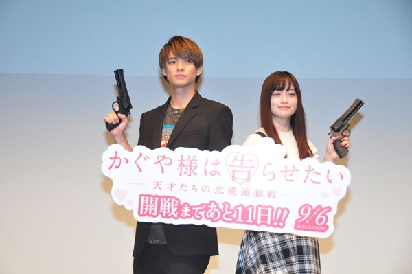 平野紫耀と橋本環奈が8月26日に行われた『かぐや様は告らせたい~天才たちの恋愛頭脳戦~』公開直前イベントに来場。映画の物語にちなんで招待された69組138名のカップルたちを自らの意のままに操るべく奮闘した。