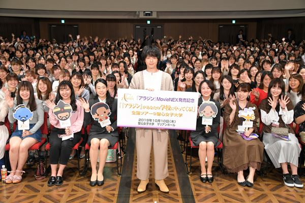 ディズニー不朽の名作を空前のスケールで実写化し、国内興収120億円越えの大ヒットを記録した『アラジン』のMovieNEXが10月9日に発売。これを記念し、読売新聞社との協力で“『アラジン』があなたの学校にやってくる!”全国ツアーと題し、全国約15の大学、高校、中学校で、『アラジン』本編をMovieNEXにて上映。その中から今回、聖心女子大学で行われた上映会に、アラジン役の吹替え声優を担当した中村倫也がスペシャルゲストとして登壇した。