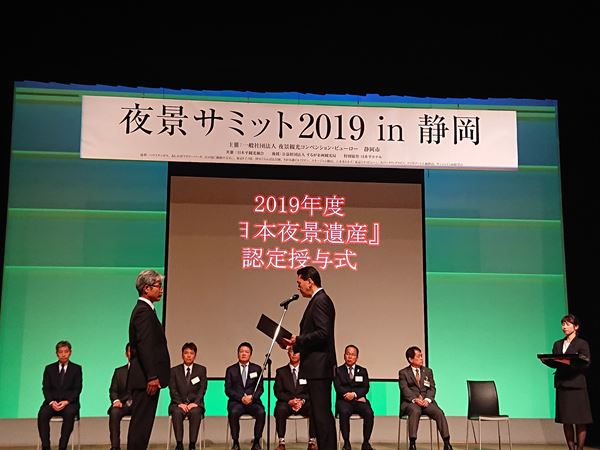 後半は2019年度「日本夜景遺産」新規認定授与式を実施。全国5542名の夜景鑑賞士及び自治体・事業者による全国約100カ所以上のエントリーの中から、事務局の基準に基づく調査、夜景マイスター(夜景鑑賞士検定1級の有資格者)による投票、各管理団体への確認申請等を経て、全国から新たに8カ所が認定を受けた。