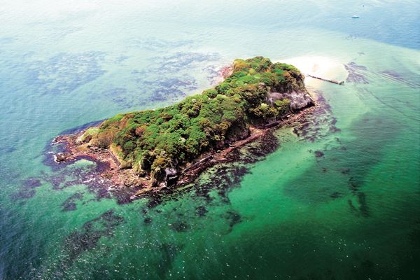 横須賀・三笠桟橋からフェリーで約10分。猿島は東京湾唯一の無人島で、弥生時代の貝塚や明治時代初期から築かれた砲台跡などが自然と融和し、独特の景観を生み出している。