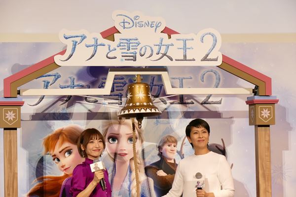 前作からの続投について、松は「うれしい反面、また、エルサに戻れるか漠然とした不安もあった」と明かし、本作のために書き下ろされた楽曲には「終始タフなナンバーが揃い、情熱を感じました。何、限界に挑戦しているんだって(笑)思うほど」と圧倒された様子。一方、神田は「前作から積み上げたアナ像を、生き生きと演じられたらいいなと。楽曲は大人っぽく、気持ちやセリフの延長線上で歌わせていただいた。前回とは違う感覚」と振り返った。