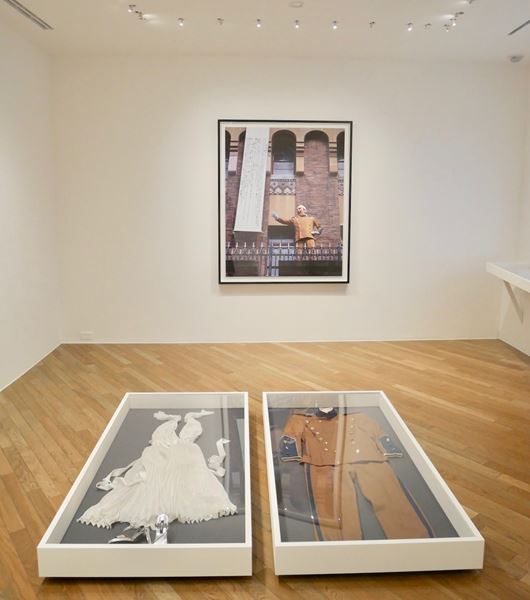 この映像作品は、2018年にニューヨークのジャパンソサエティーで行われた森村の個展で上映された作品を、今回の展覧会用に再編集したもの。その中で、森村は自身の生い立ちの背景となった日本近現代史や文化史について言及。1951年、占領下の大阪に生まれた森村は、戦前の教えを否定するような教育を受ける中で、「真理や価値や思想というものは、いくらでも自由に着替えることができる」(映像作品《エゴオブスクラ》より)という発想に導かれたという。