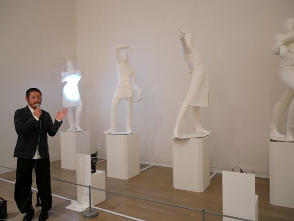 彫刻家の小谷元彦は、「異形態」を意味する《Morph(モルフ)》というタイトルの彫刻作品を発表。小谷氏は、「JOJO作品はポージングや肉体の欠損に対するアプローチが、彫刻ジャンルと符合するんです。それらを利用して、人物のスピードや動き、スタンドなど、不可視なものを目に見える形で実体化させようと考えました」と、作品コンセプトを紹介。JOJOの世界観を実体化した迫力の彫刻作品が会場内でひときわ異彩を放つ。