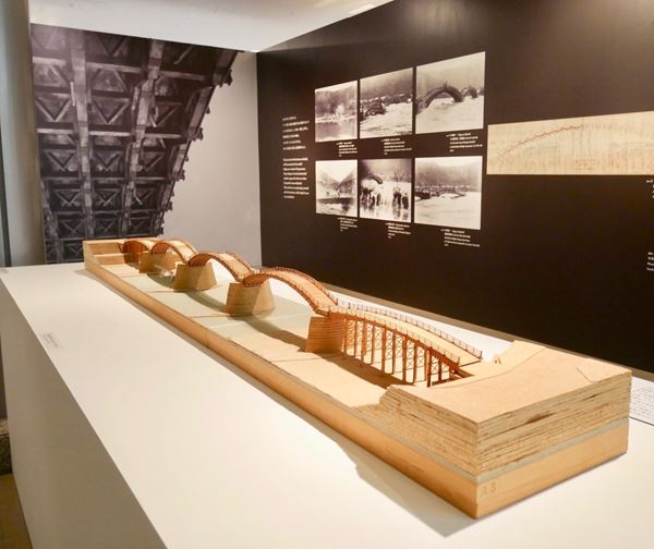 展覧会は、「はじまりとしての錦帯橋」をプロローグとして、「いしずえ 具象をきわめる」「深まり 素材と向き合う」「ひろがり 公共空間を活かす」「匠 そりとむくり」と題した全4章で構成。