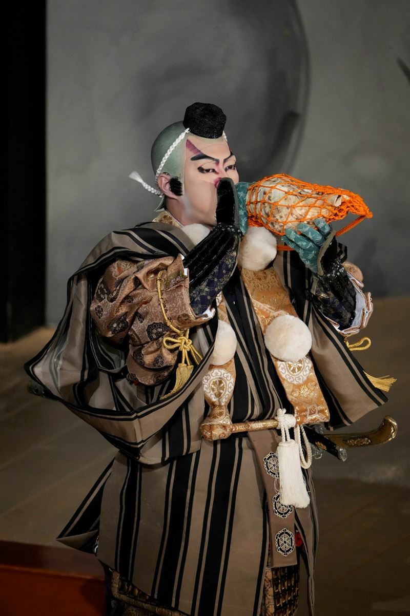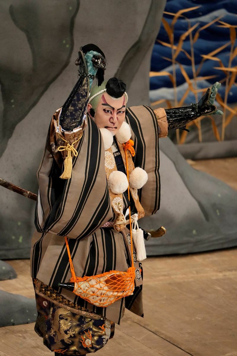 橋之助 弁慶からすれば、「知盛公、どうか成仏されよ、そして我々が進む道もまた険しいぞ」と。そしてふとほら貝が目に入り、「そうだこれで鎮魂しよう」となるのでしょう。侍としての敬意、もしかしたら知盛の心意気が羨ましいと思う気持ちも少しあるのかも。弁慶からすればそういう気持ちの流れです。お客様の中には、この先義経主従はどこへ向かうのだろう、どうなるのだろうと思う方もいらっしゃると思います。でもあえて意味にとらわれずに、「ああそうか、そうだよね、はい、ここで第一部はおしまいなのね」ってご覧いただいてもうれしいんです。歌舞伎の面白さってお客様が観て感じるためののりしろが残されているところだと思うので。
