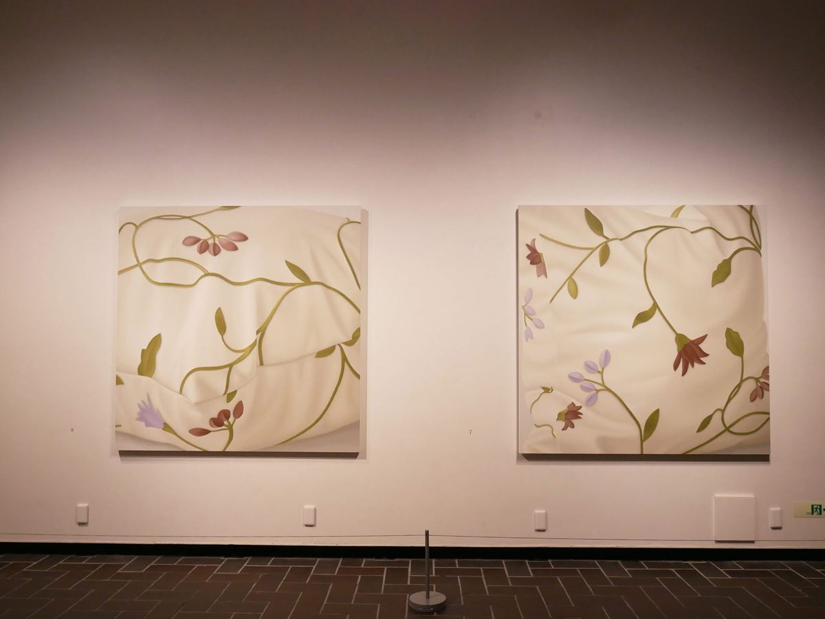 「質感」の方は、会場の前半に当たるギャラリーCで、クッションや枕、陶器をモティーフとした2004〜2016年の絵画が展示されている。それらものの素材感もさることながら、クッションのような柔らかいもの、陶器のような硬くて艶のあるもの、それぞれの材質によって光が当たったときの反射光が違う。