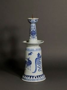 染付福禄寿文燭台 江戸時代後期・19世紀 東山焼 高:48.5㎝ 辻井正・由紀子氏寄贈