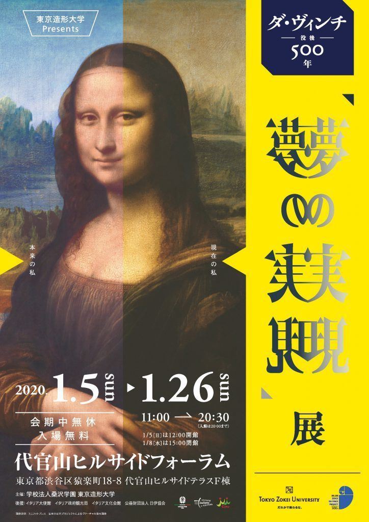 ダ・ヴィンチ没後500年 「夢の実現」展 20/1/5(日)~20/1/26(日) 代官山ヒルサイドフォーラム シェア ツイート 開催情報 ジャンル ギャラリー 11:00〜20:30(1月5日(日)は12:00~、1月8日(水)は~15:00 ※入館は閉館の30分前まで)、無休 料金 無料 お問い合わせ 東京造形大学 シェア ツイート