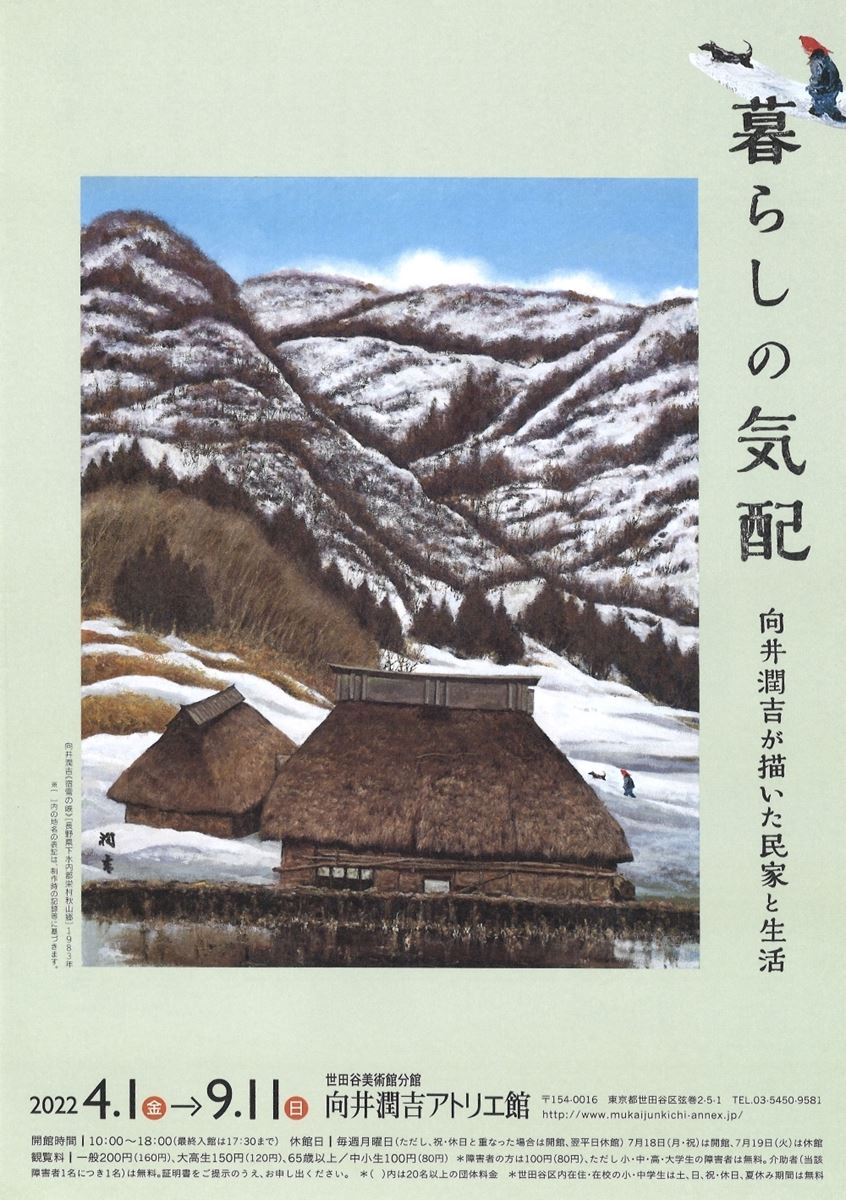 暮らしの気配 向井潤が描いた民家と生活 22/4/1(金)~22/9/11(日) 世田谷美術館分館向井潤吉アトリエ館 シェア ツイート 開催情報 ジャンル 美術館 10:00〜18:00、月曜日休館(ただし、祝・休日と重なった場合、翌平日休館) ※入館は閉館の30分前まで 料金 一般200円(160円)、大高生150円(120円)、65歳以上・中小生100円(80円) ※( )内は20名以上の団体料金。※世田谷区内在住・在校の小・中学生は土曜、日曜、祝・休日、夏休みは無料※障害者の方:個人は100円(団体は80円)。ただし小中高大学生の障害者は無料。介助者(当該障害者1名につき1名)は無料※学生証・障害者手帳など、確認できるものをご提示ください 出品作家 向井潤吉 お問い合わせ 世田谷美術館分館 向井潤吉アトリエ館 公式サイト シェア ツイート