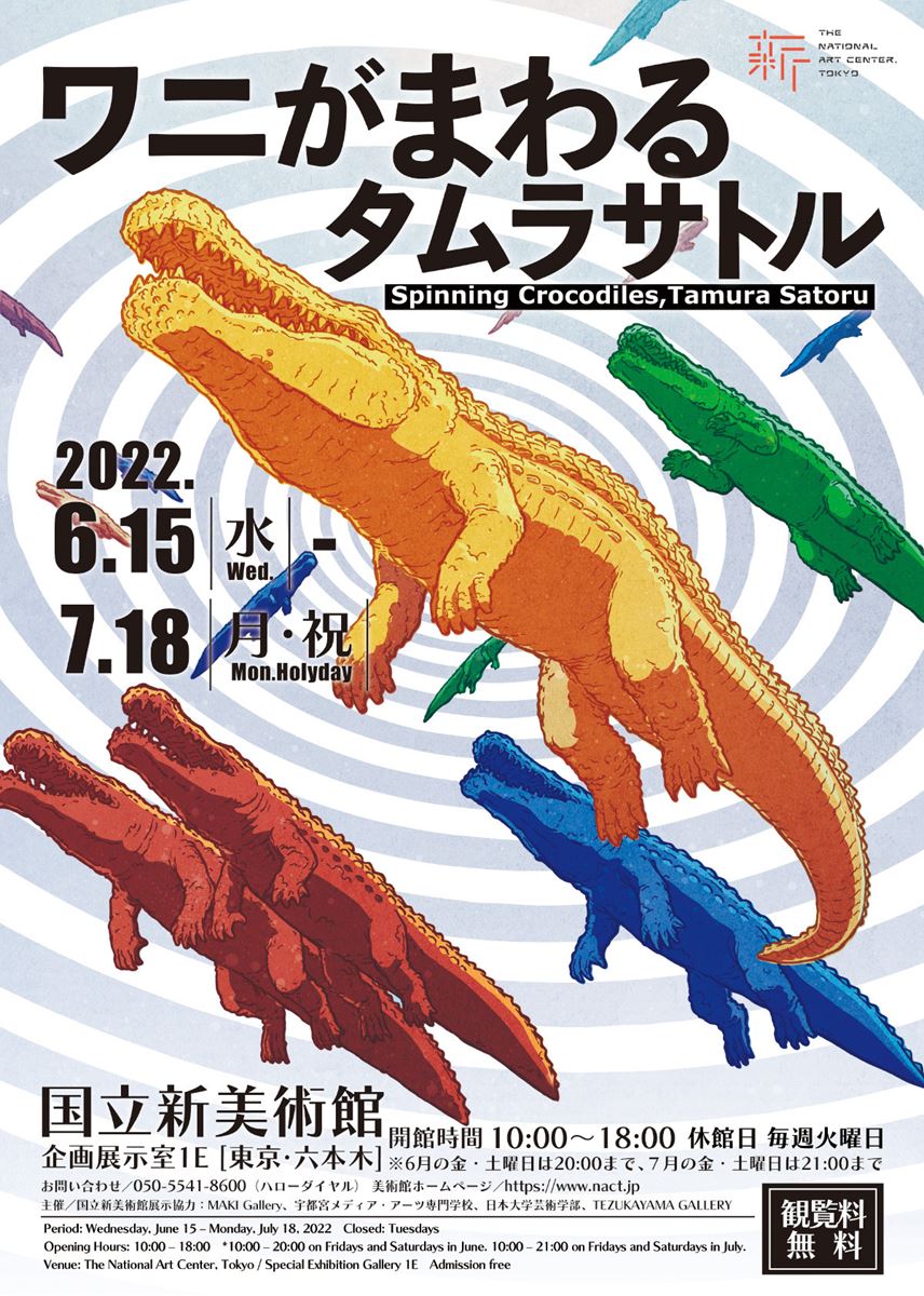 開館15周年という記念の年に、現代美術家・タムラサトルの個展を開催。代表作「まわるワニ」のカラフルな彫刻を、約12メートルの巨大なワニを中心に、大型インスタレーション作品として展開する。ユーモアに満ちたタムラの作品は、既成の価値観を揺さぶり、「アートとは何か」という問いについて考えさせてくれます。また、作家の自由で豊かな想像力に触れることで、アートを身近に感じ、子どもから大人まで楽しんでいただける展覧会。