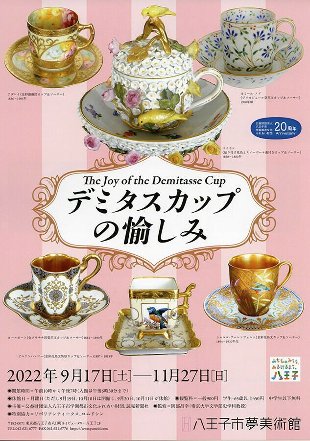 本展では、19〜20世紀に欧州の名窯が生んだ質の高いデミタスをはじめ、創造性の輝く逸品を村上和美氏のコレクションを中心に参考資料も含め、約340点ご紹介。本コレクションならではの個性豊かなデミタスの魅力を是非ご堪能いただきたい。