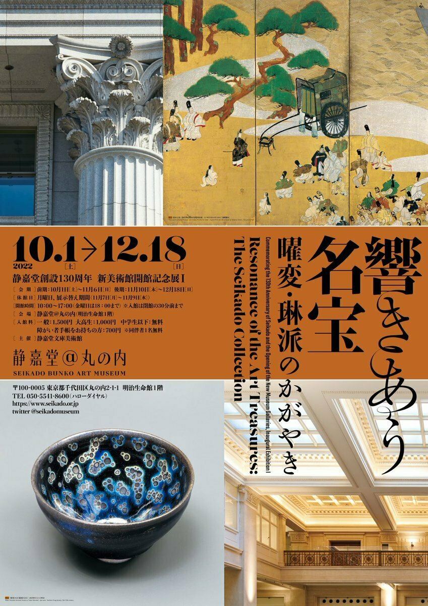 創設130周年を迎える静嘉堂は、美術館のギャラリーを世田谷岡本の地から、丸の内の重要文化財建築、明治生命館(昭和9年〈1934〉竣工)1階へ移転。開館記念展第1弾となる本展では、静嘉堂が所蔵する全ての国宝を始め、茶道具・琳派作品・中国書画や陶磁器・刀剣などの選りすぐりの名宝を、新たな建築空間に合わせ4つのテーマで展観するものである。