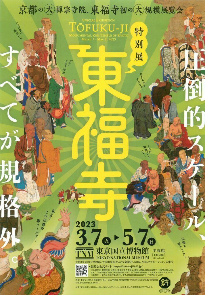 東福寺の寺宝をまとめて紹介する初の機会となる本展では、伝説の絵仏師・明兆による記念碑的大作「五百羅漢図」全幅を修理後初公開するとともに、巨大伽藍にふさわしい特大サイズの仏像や書画類も一堂に展観する。草創以来の東福寺の歴史を辿りつつ、大陸との交流を通して花開いた禅宗文化の全容を幅広く紹介し、東福寺の日本文化における意義とその魅力を余すところなくご覧いただく。