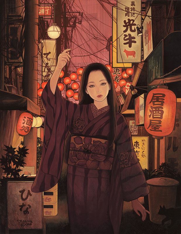 加藤美紀氏は、レトロな世界観や空想上の生き物など多様なモチーフや表現を駆使して、日本に根差す伝統や信仰、風習・風土、そこに込められた人々の思いをくみ取りながら、現代を生きる女性を時に可憐に、時に妖艶に描きだす。