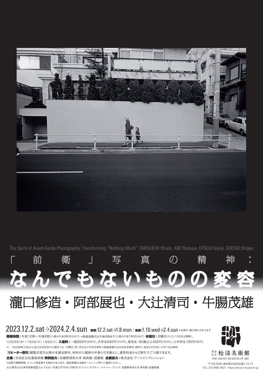 戦後、個々人のなかに前衛写真の精神は継承され、特需景気、経済成長からその限界へとひた走る戦後の日本社会に反応し続けた。とりわけ、写真家としての出発点において瀧口と阿部に強く影響を受けた大辻と、「桑沢デザイン研究所」における大辻の教え子だった牛腸の二人は、時代に翻弄され移り変わる「日常現実」を批判的に見つめなおし、数々の名作を生み出した。その写真には、反抗と闘争の60年代が過ぎ去った70年代、変容を遂げつつあった「前衛」の血脈が隠されている。4人の精神があぶりだす、「なんでもないもの」のとんでもなさ。どうぞ穴の開くほど、じっくりと鑑賞してほしい。