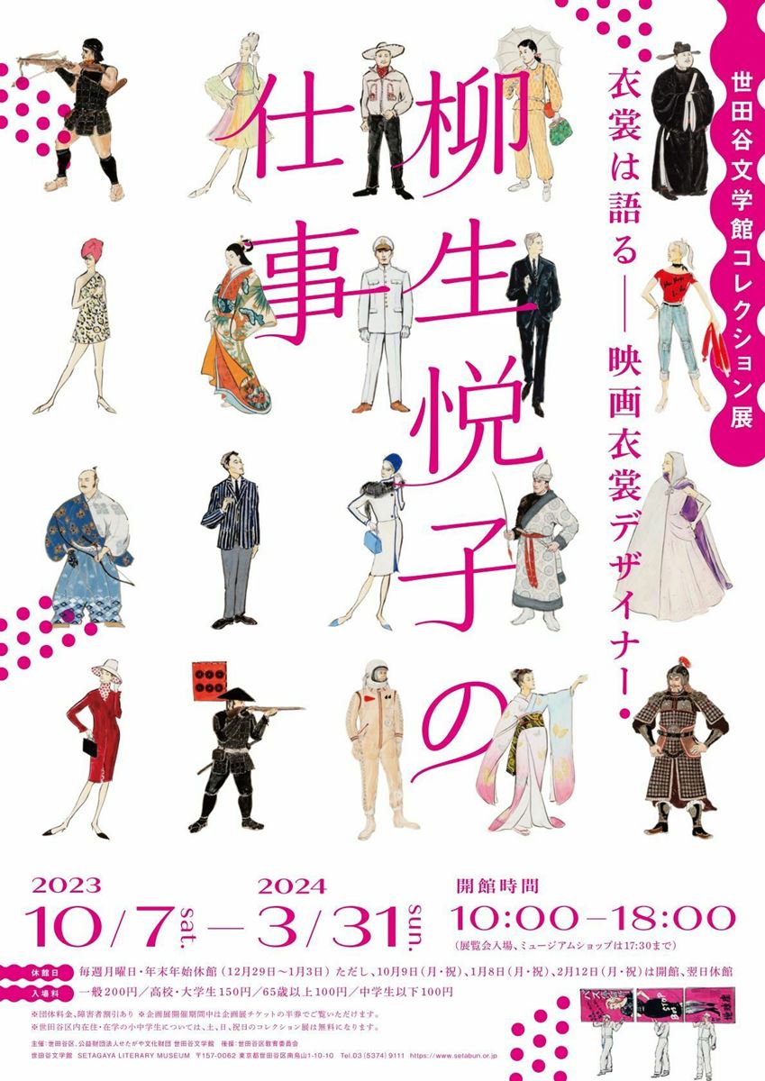 世田谷文学館コレクション展 衣裳は語る──映画衣裳デザイナー・柳生悦子の仕事 23/10/7(土)~24/3/31(日) 世田谷文学館 シェア ツイート 開催情報 ジャンル 美術館 10:00~18:00 ※展覧会入場、ミュージアムショップの営業は17:30まで、月曜・年末年始(12月29日~1月3日)休(ただし、10/9(月・祝)、1/8(月・祝)、2/12(月・祝)は開館し翌日休館 料金 一般200円、大学・高校生150円、65歳以上・小中学生100円、障害者手帳をお持ちの方100円(ただし大学生以下は無料) 出品作家 柳生悦子 公式サイト シェア ツイート