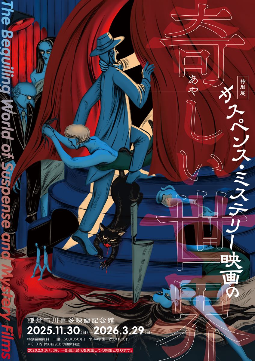 [特別展] サスペンス・ミステリー映画の奇(あや)しい世界 25/11/30(日)~26/3/29(日) 鎌倉市川喜多映画記念館 シェア ツイート 開催情報 ジャンル 美術館 9:00〜17:00(※入館は16:30まで)月曜休(※月曜日が休日の場合は開館し、翌平日休館日) 料金 一般500円、小・中学生250円 ※鎌倉市民は無料(要証明書) お問い合わせ 鎌倉市川喜多映画記念館 公式サイト シェア ツイート