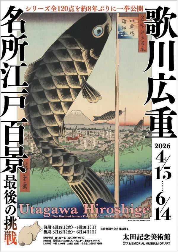本展では、「名所江戸百景」シリーズ全120点を約8年ぶりに一挙公開。全作の展観を通じて、広重が晩年に挑んだ表現の革新と、その到達点を作品から読み解く。名作の圧倒的な魅力を、ぜひ会場で体感してほしい。