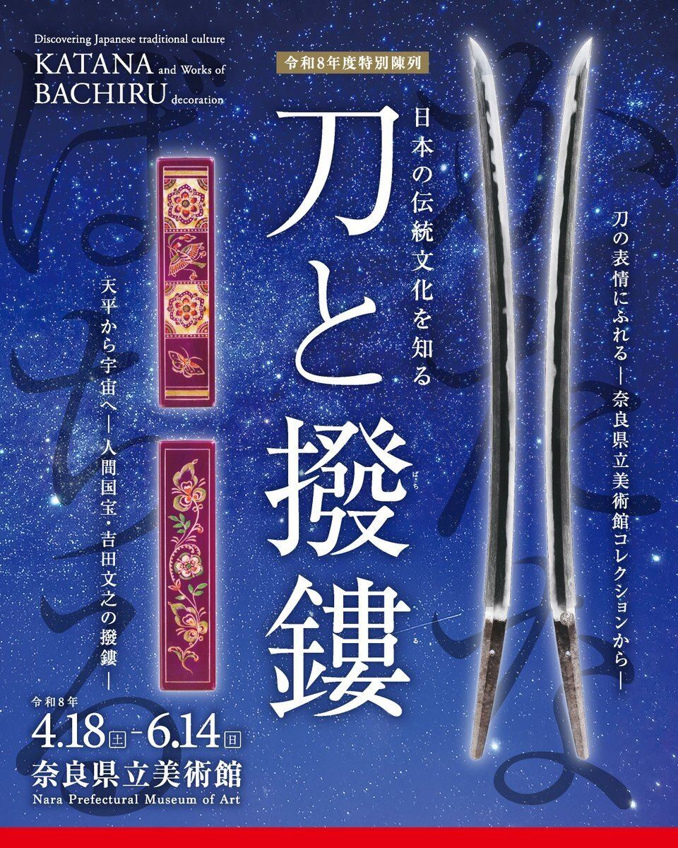 奈良県立美術館では、令和6年度から“日本の伝統文化を知る”展覧会シリーズとして、所蔵作品を中心に奈良や日本の伝統文化を紹介し、その魅力を発信している。このシリーズの一環として、令和8年度春の特別陳列では刀と撥鏤という2つの分野を取り上げる。