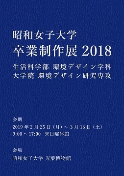 昭和女子大学 卒業制作展2018 19/2/25(月)~19/3/16(土) 昭和女子大学光葉博物館 シェア ツイート 生活科学部環境デザイン学科、大学院環境デザイン専攻による卒業設計・卒業制作の作品を展示。 開催情報 ジャンル 美術館 9:00〜17:00、日曜日休館 料金 無料 お問い合わせ 昭和女子大学光葉博物館 公式サイト シェア ツイート
