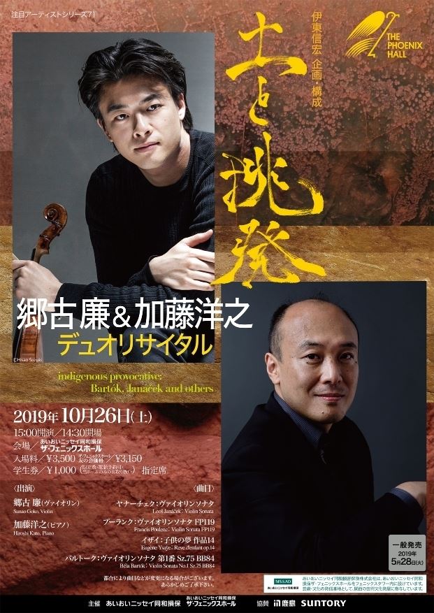 郷古 廉&加藤洋之 デュオリサイタル/伊東信宏 企画・構成 土と挑発 19/10/26(土) あいおいニッセイ同和損保 ザ・フェニックスホール シェア ツイート ヤナーチェク:ヴァイオリンソナタ/プーランク:ヴァイオリンソナタ FP.119/イザイ:子供の夢 作品14/バルトーク:ヴァイオリンソナタ 第1番 Sz.75 BB84 (予定) 公演情報 ジャンル 器楽 ピアノ・鍵盤楽器 未就学児童は入場不可。 料金 一般-3,500円 一般-指定 表示できるチケット情報はありません詳しくはこちら キャスト&スタッフ ヴァイオリン 郷古廉 ピアノ 加藤洋之 お問い合わせ ザ・フェニックスホールチケットセンター 公式サイト シェア ツイート
