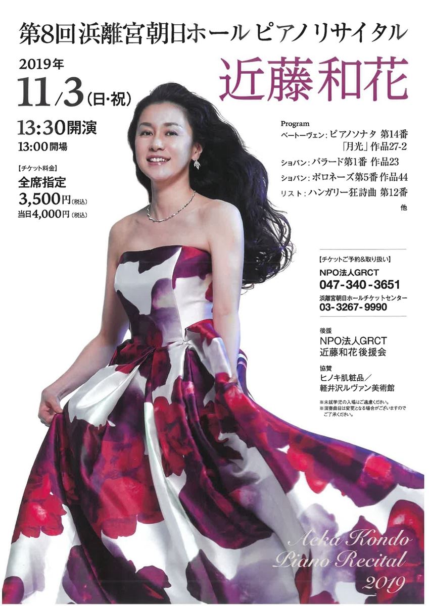 近藤和花ピアノリサイタル 19/11/3(日) 浜離宮朝日ホール シェア ツイート ベートーヴェン:ピアノソナタ「月光」作品27-2 ほか 公演情報 ジャンル ピアノ・鍵盤楽器 料金 全席指定-3,500円当日-4,000円 キャスト&スタッフ ピアノ:近藤和花 お問い合わせ NPO法人 GRCT事務局 公式サイト シェア ツイート