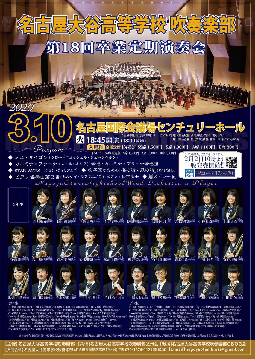 【公演延期】名古屋大谷高等学校 吹奏楽部第18回卒業定期演奏会 20/3/10(火) 名古屋国際会議場 センチュリーホール シェア ツイート 公演情報 ジャンル 吹奏楽 3歳以下は、保護者膝上に限り無料。但し、席が必要な場合は有料。 料金 SS-1,500円 S-1,300円 A-1,100円 B-800円 表示できるチケット情報はありません詳しくはこちら キャスト&スタッフ 吹奏楽 名古屋大谷高等学校吹奏楽部 お問い合わせ 名古屋大谷高等学校吹奏楽部卒業定期演奏会事務局 シェア ツイート