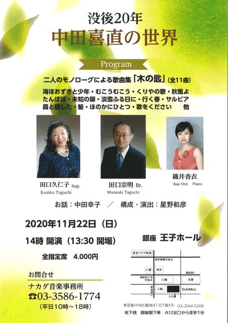 没後20年 中田喜直の世界 20/11/22(日) 王子ホール シェア ツイート 二人のモノローグによる歌曲集「木の匙」(全11曲) 公演情報 ジャンル 声楽 料金 全席指定-4,000円 キャスト&スタッフ ソプラノ:田口久仁子/バリトン:田口宗明/ピアノ:織井香衣/お話:中田幸子 お問い合わせ ナカダ音楽事務所 公式サイト シェア ツイート
