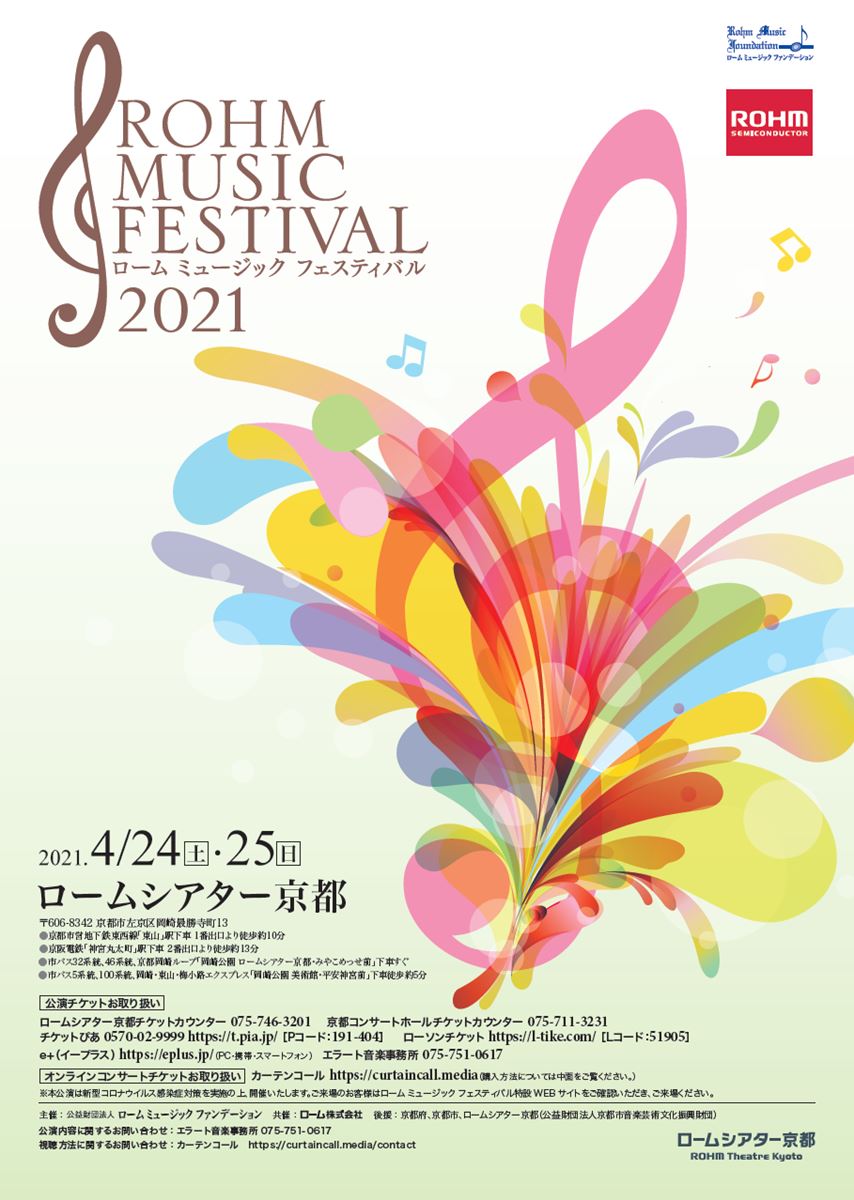 ローム ミュージック フェスティバル2021 21/4/24(土)~21/4/25(日) ロームシアター京都 サウスホール、ロームシアター京都 メインホール シェア ツイート 公演情報 ジャンル フェスティバル 未就学児童は入場不可。 料金 S席-3,000円 S席-4,000円 A席-1,500円 A席-2,500円 B席-1,500円 表示できるチケット情報はありません詳しくはこちら キャスト&スタッフ 出演 田村響 黒川侑 瀧本麻衣子 佐藤晴真 渡邉玲雄 清塚信也 松田理奈 古川展生 森野美咲 高田正人 甲斐栄次郎 朝岡聡 東京交響楽団 鷲尾麻衣 森雅史 三浦友理枝 浜野与志男 神谷未穂 礒絵里子 赤坂智子 中木健二 吉田誠 郷古廉 菊池洋子 指揮 下野竜也 お問い合わせ エラート音楽事務所 公式サイト シェア ツイート