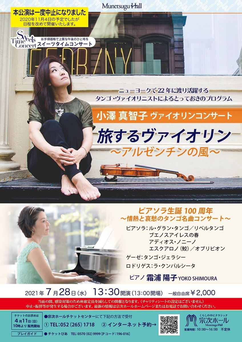 旅するヴァイオリン~アルゼンチンの風 21/7/28(水) 宗次ホール シェア ツイート ピアソラ:ル・グラン・タンゴ、ブエノスアイレスの春、アディオス・ノニーノ、エスクアロ(鮫)、オブリビオン、リベルタンゴ/ゲーゼ:タンゴ・ジェラシー/ロドリゲス:ラ・クンパルシータ 公演情報 ジャンル 器楽 未就学児童は入場不可。当面の間、感染対策として座席定員を減らして販売いたします。マスクを着用しない方の入館はお断りいたします。中止・振替等が発生する場合がございます。最新の情報は宗次ホールホームページまたは問合せ先までご確認ください。 料金 自由-2,000円 表示できるチケット情報はありません詳しくはこちら キャスト&スタッフ ヴァイオリン:小澤真智子/ピアノ:霜浦陽子 お問い合わせ 宗次ホールチケットセンター 公式サイト シェア ツイート