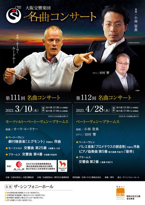 【公演延期】大阪交響楽団 第112回名曲コンサート 21/4/28(水) ザ・シンフォニーホール シェア ツイート ベートーヴェン:バレエ音楽「プロメテウスの創造物」op.43 序曲/ベートーヴェン:ピアノ協奏曲第5番 変ホ長調 op.73「皇帝」/ブラームス:交響曲第2番 ニ長調 op.73 公演情報 ジャンル オーケストラ 料金 S-3,500円A-3,000円 キャスト&スタッフ 指揮 小林資典 ピアノ 田村響 管弦楽 大阪交響楽団 お問い合わせ 大阪交響楽団 公式サイト シェア ツイート