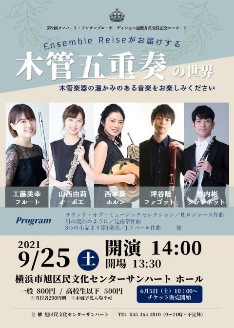 木管五重奏の世界 21/9/25(土) 横浜市旭区民文化センター(サンハート) ホール シェア ツイート Ensemble Reiseがお届けする木管五重奏の演奏会 公演情報 ジャンル 器楽 室内楽 未就学児入場不可 料金 全席自由 一般-800円 全席自由高校生以下-500円 表示できるチケット情報はありません詳しくはこちら キャスト&スタッフ 出演:Ensemble Reise お問い合わせ 横浜市旭区民文化センターサンハート 公式サイト シェア ツイート