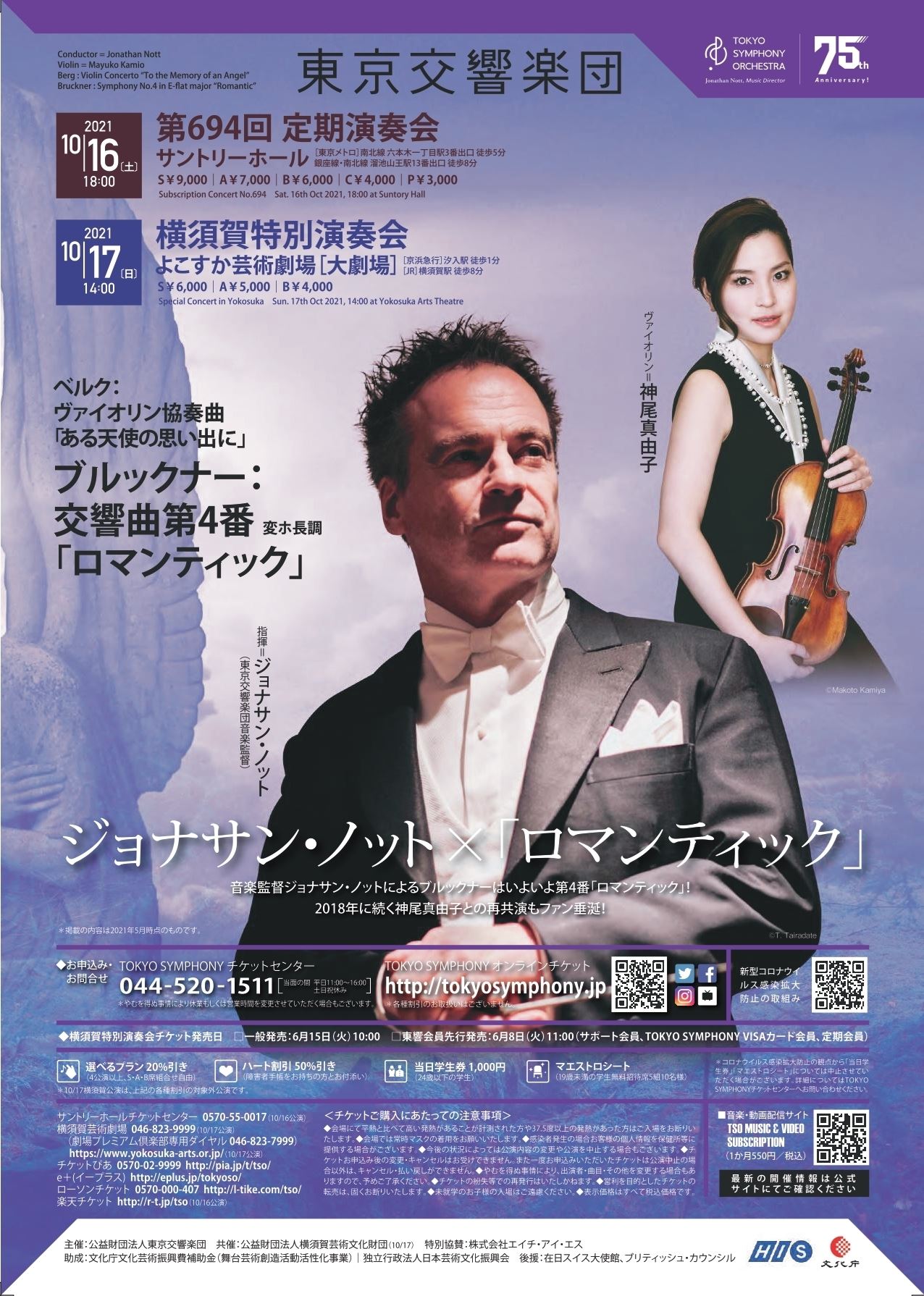 東京交響楽団 横須賀特別演奏会 21/10/17(日) よこすか芸術劇場 シェア ツイート ベルク:ヴァイオリン協奏曲「ある天使の思い出に」/ブルックナー:交響曲第4番 変ホ長調「ロマンティック」(1888年稿コーストヴェット版) 公演情報 ジャンル オーケストラ 未就学児童は入場不可。【払戻に関して】https://tokyosymphony.jp/pc/news/news_4391.html 料金 S席-6,000円 A席-5,000円 B席-4,000円 表示できるチケット情報はありません詳しくはこちら キャスト&スタッフ 指揮 ジョナサン・ノット 管弦楽 東京交響楽団 ヴァイオリン 神尾真由子 お問い合わせ TOKYO SYMPHONYチケットセンター 公式サイト シェア ツイート