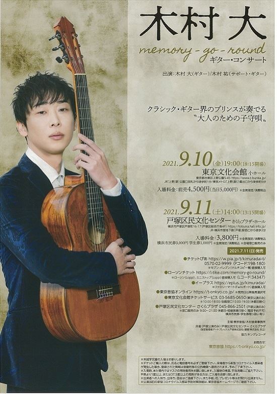 木村大ギター・コンサート 21/9/10(金) 東京文化会館 小ホール シェア ツイート 17歳で鮮烈なデビューをしたクラシックギタリスト木村大、デビュー20周年を迎えてリリースした最新アルバム”memory-go-round”の発売を記念したスペシャル・コンサート。 公演情報 ジャンル 器楽 未就学児童は入場不可。公演に関する問合せはhttps://t-onkyo.co.jp/まで。 料金 全席指定-4,500円 表示できるチケット情報はありません詳しくはこちら キャスト&スタッフ ギター 木村大 木村祐 公式サイト シェア ツイート