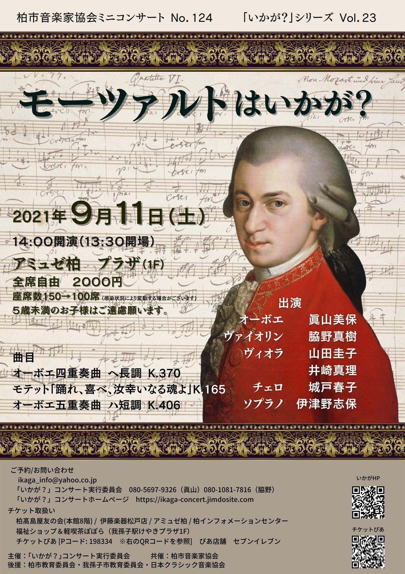 モーツァルトはいかが? 21/9/11(土) アミュゼ柏 プラザ シェア ツイート 皆様の大好きな天才モーツァルトの音楽を、ソプラノ、オーボエと弦楽器でお楽しみください♪ 公演情報 ジャンル 声楽 器楽 室内楽 5歳未満のお子様はご遠慮願います。 料金 全席自由-2,000円 表示できるチケット情報はありません詳しくはこちら キャスト&スタッフ ソプラノ 伊津野志保 オーボエ 眞山美保 ヴァイオリン 脇野真樹 ヴィオラ 山田圭子 中津留綾奈 チェロ 城戸春子 お問い合わせ いかがコンサート実行委員会 シェア ツイート