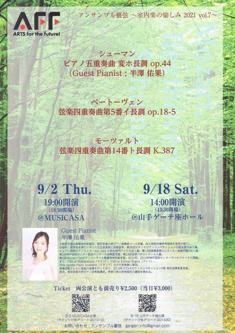 アンサンブル藝弦コンサート 室内楽の愉しみ 21/9/18(土) 山手ゲーテ座 シェア ツイート 公演情報 ジャンル 器楽 室内楽 料金 全席自由-2,500円 表示できるチケット情報はありません詳しくはこちら お問い合わせ アンサンブル藝弦 シェア ツイート