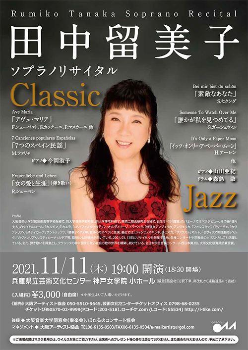 田中留美子ソプラノリサイタル 21/11/11(木) 兵庫県立芸術文化センター 神戸女学院小ホール シェア ツイート 大阪音楽大学専攻科修了。8年ぶり4度目のリサイタルは前半クラシックプログラム、後半ジャズナンバーといった田中留美子らしい選曲でお届けします。 公演情報 ジャンル 声楽 未就学児童は入場不可。 料金 自由席-3,000円 表示できるチケット情報はありません詳しくはこちら キャスト&スタッフ ソプラノ 田中留美子 お問い合わせ 大阪アーティスト協会 公式サイト シェア ツイート