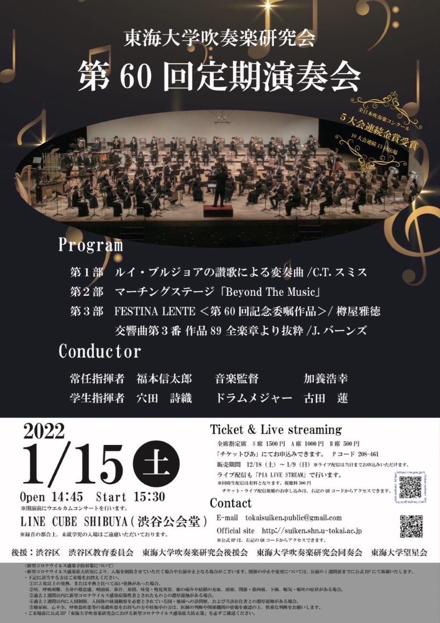 東海大学吹奏楽研究会 22/1/15(土) LINE CUBE SHIBUYA シェア ツイート 公演情報 ジャンル 吹奏楽 未就学児童は入場不可。公演内容に関する詳細はtokaisuiken.public@gmail.comまで。 料金 S席-1,500円 A席-1,000円 B席-500円 表示できるチケット情報はありません詳しくはこちら キャスト&スタッフ 出演 東海大学吹奏楽研究会 シェア ツイート