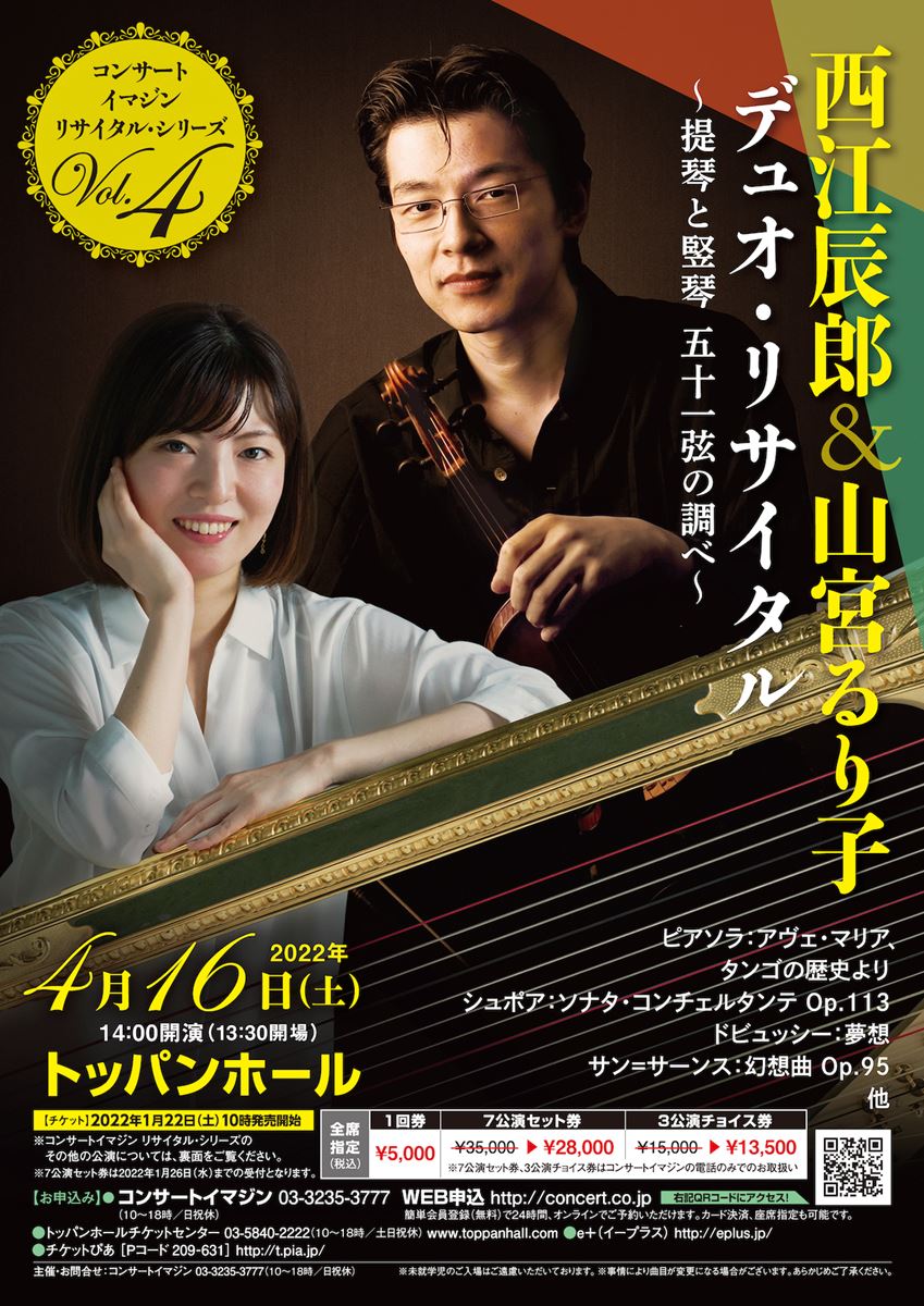西江辰郎&山宮るり子デュオ・リサイタル 22/4/16(土) トッパンホール シェア ツイート ピアソラ:アヴェ・マリア/ピアソラ:タンゴの歴史より/シュポア:ソナタ・コンチェルタンテ Op.113/ドビュッシー:夢想/サン=サーンス:幻想曲 Op.95 他 公演情報 ジャンル 室内楽 器楽 未就学児童は入場不可。 料金 全席指定-5,000円 表示できるチケット情報はありません詳しくはこちら キャスト&スタッフ ヴァイオリン 西江辰郎 ハープ 山宮るり子 お問い合わせ コンサートイマジン 公式サイト シェア ツイート