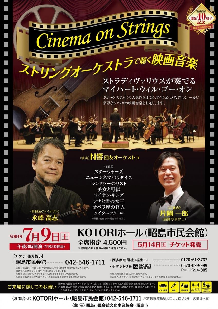 Cinema on Strings ストリングオーケストラで聴く映画音楽 22/7/9(土) KOTORIホール シェア ツイート 公演情報 ジャンル オーケストラ 未就学児童は入場不可。 料金 全席指定-4,500円 表示できるチケット情報はありません詳しくはこちら キャスト&スタッフ 指揮、ヴァイオリン 永峰高志 演奏 N響団友オーケストラ 司会 片岡一郎 お問い合わせ KOTORIホール シェア ツイート