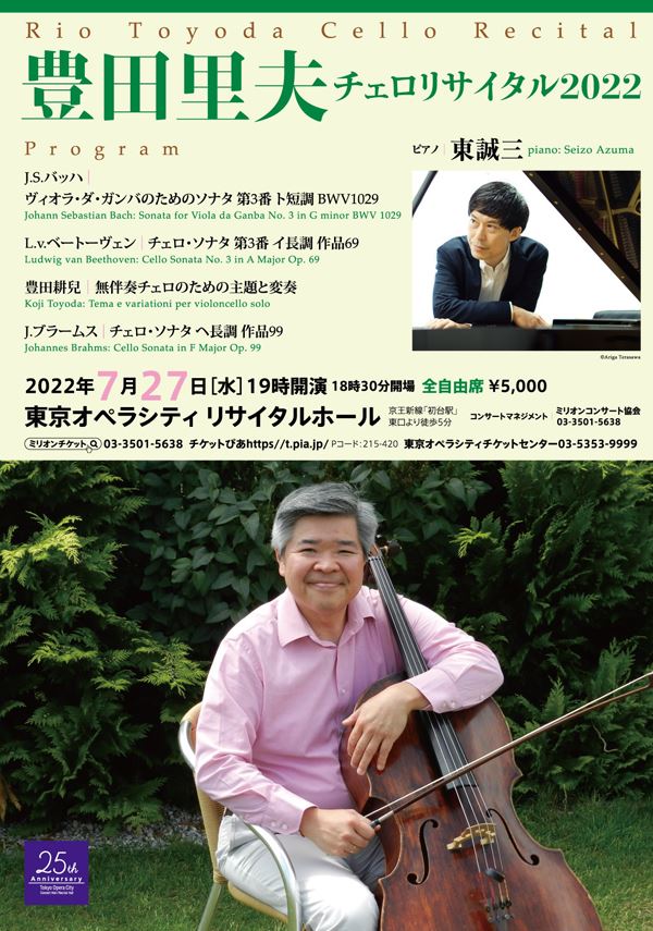 豊田里夫チェロリサイタル2022 22/7/27(水) 東京オペラシティ リサイタルホール シェア ツイート J.S.バッハ:ヴィオラ・ダ・ガンバのためのソナタ 第3番 ト短調 BWV1029/ベートーヴェン:チェロ・ソナタ 第3番 イ長調 Op.69/豊田耕兒:無伴奏チェロのための主題と変奏/ブラームス:チェロ・ソナタ ヘ長調 Op.99 公演情報 ジャンル 室内楽 器楽 料金 全席自由-5,000円 表示できるチケット情報はありません詳しくはこちら キャスト&スタッフ チェロ 豊田里夫 ピアノ 東誠三 お問い合わせ (株)ミリオンコンサート協会 公式サイト シェア ツイート