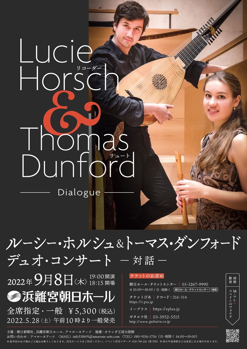 ルーシー・ホルシュ(Recd)/トーマス・ダンフォード(リュート) 22/9/8(木) 浜離宮朝日ホール シェア ツイート 公演情報 ジャンル 室内楽 器楽 公演内容に関する詳細はhttps://amarone-arts.comまで。 料金 全席指定-5,300円 表示できるチケット情報はありません詳しくはこちら キャスト&スタッフ 出演 トーマス・ダンフォード ルーシー・ホルシュ シェア ツイート