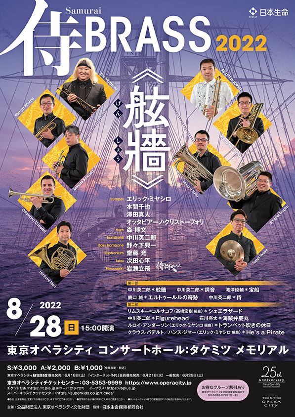 侍BRASS 22/8/28(日) 東京オペラシティ コンサートホール:タケミツメモリアル シェア ツイート ジャンルを超えてトッププレイヤーたちが集結するスーパー・アンサンブル。 公演情報 ジャンル 吹奏楽 未就学児童は入場不可。 料金 S席-3,000円 A席-2,000円 B席-1,000円 表示できるチケット情報はありません詳しくはこちら キャスト&スタッフ 出演 侍BRASS お問い合わせ 東京オペラシティチケットセンター 公式サイト シェア ツイート