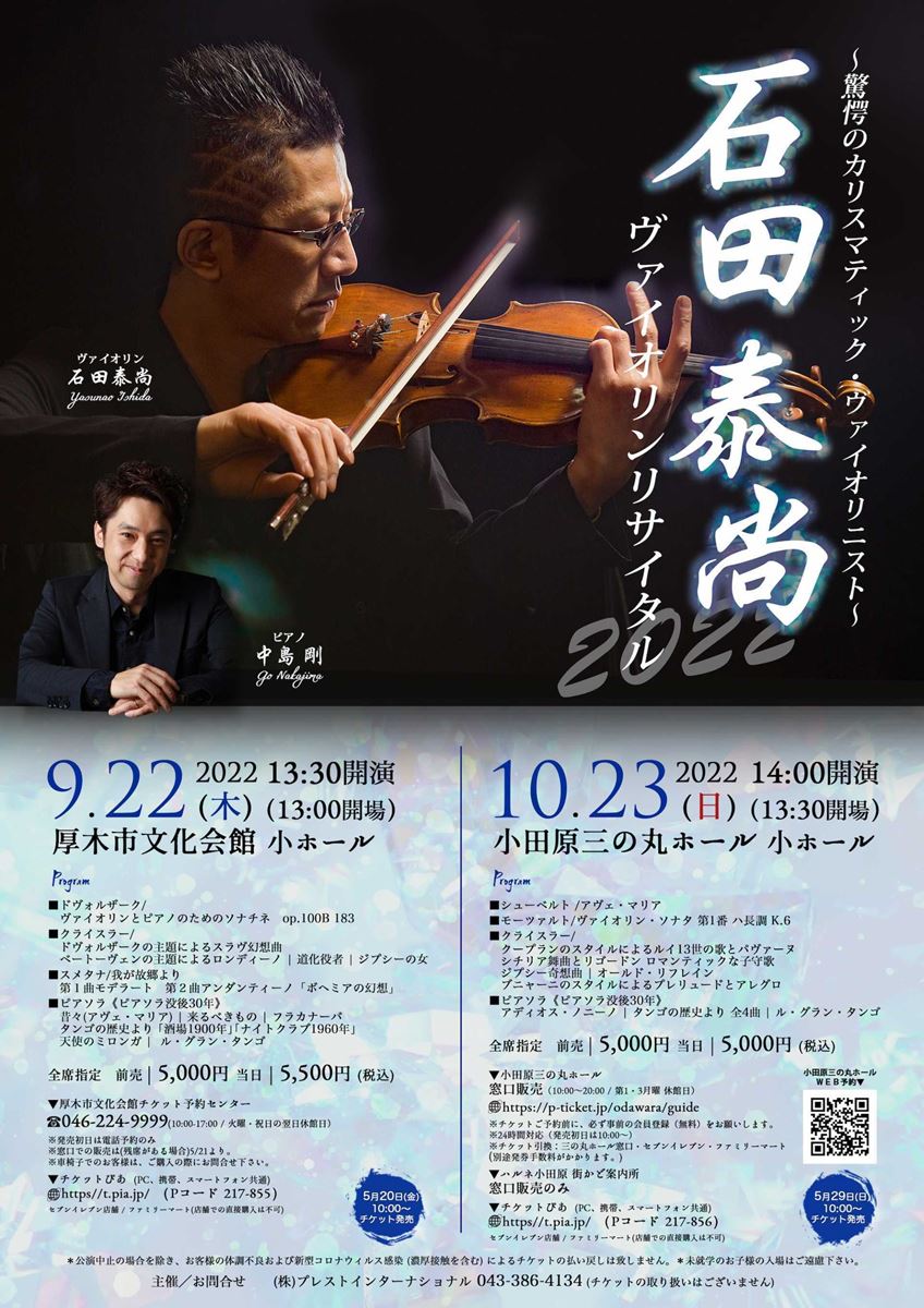 石田泰尚ヴァイオリン・リサイタル2022 22/9/22(木) 厚木市文化会館 小ホール シェア ツイート 公演情報 ジャンル 室内楽 器楽 未就学児童は入場不可。 料金 全席指定-5,000円 表示できるチケット情報はありません詳しくはこちら キャスト&スタッフ 出演 石田泰尚 共演 中島剛 お問い合わせ プレストインターナショナル シェア ツイート