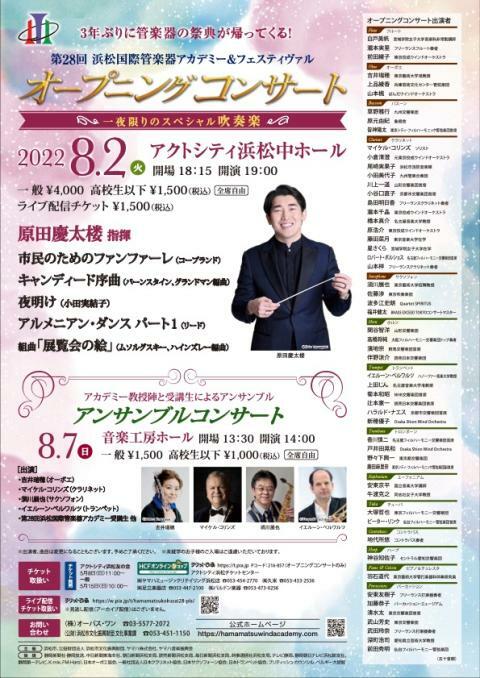 浜松国際管楽器アカデミー&フェスティヴァルオープニングコンサート 22/8/2(火) アクトシティ浜松 中ホール シェア ツイート ~一夜限りのスペシャル吹奏楽~ 3年ぶりに管楽器の祭典が帰ってくる! 公演情報 ジャンル 吹奏楽 未就学児童は入場不可。 料金 全席自由 一般-4,000円 全席自由高校生以下-1,500円 表示できるチケット情報はありません詳しくはこちら キャスト&スタッフ 出演 原田慶太楼 須川展也 マイケル・コリンズ イェルーン・ベルワルツ お問い合わせ オーパス・ワン シェア ツイート