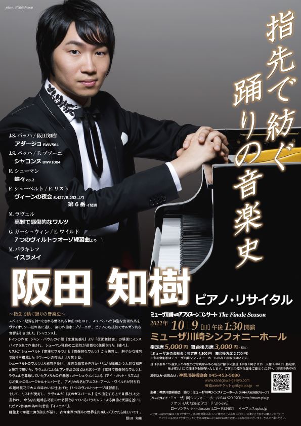 阪田知樹ピアノ・リサイタル 22/10/9(日) ミューザ川崎シンフォニーホール シェア ツイート 若くして、すでに日本を代表するピアニストに!「踊り」をテーマにした、川崎だけの特別プロ 公演情報 ジャンル ピアノ・鍵盤楽器 未就学児童は入場不可。出演者・曲目・曲順は予定のため変更の可能性あり。他に5公演セット券あり、Pコード:782-968参照。 料金 全指定席-5,000円 舞台後方席-3,000円 表示できるチケット情報はありません詳しくはこちら キャスト&スタッフ ピアノ 阪田知樹 お問い合わせ 神奈川芸術協会 公式サイト シェア ツイート