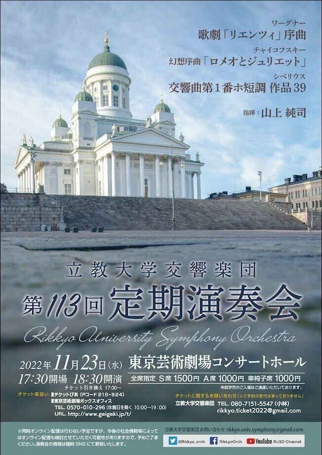 立教大学交響楽団 第113回定期演奏会 22/11/23(水) 東京芸術劇場 コンサートホール シェア ツイート 公演情報 ジャンル オーケストラ 未就学児童は入場不可。 料金 S席-1,500円 A席-1,000円 表示できるチケット情報はありません詳しくはこちら キャスト&スタッフ 指揮 山上純司 管弦楽 立教大学交響楽団 お問い合わせ 小林 シェア ツイート