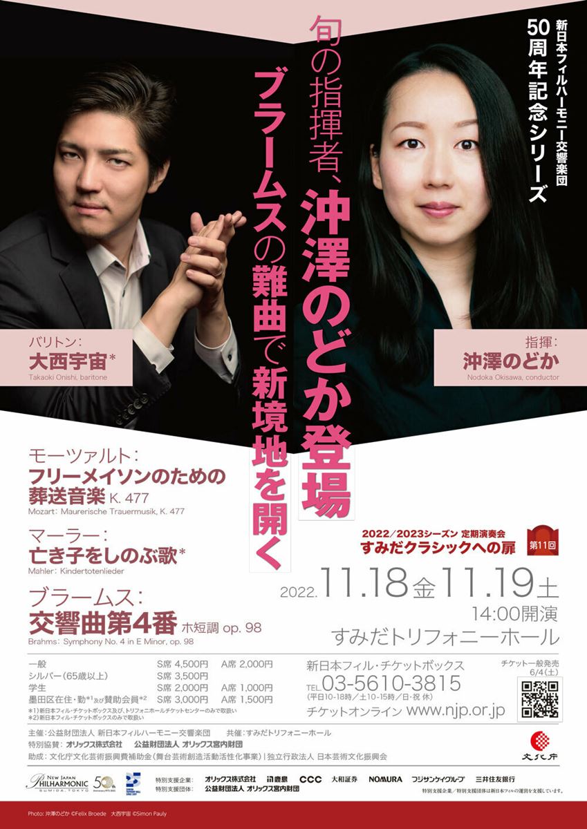 待望の沖澤のどか登場!本場ドイツで活躍中の旬の指揮者が贈るモーツァルト、マーラー、ブラームスを存分にお楽しみ下さい。