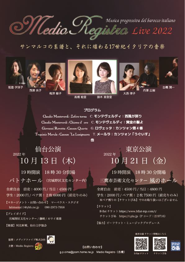 Medio Registro live 2022 22/10/21(金) 三鷹市芸術文化センター 風のホール(中ホール) シェア ツイート サンマルコの系譜と、それにまつわる17世紀イタリアの音楽 公演情報 ジャンル 室内楽 器楽 料金 自由席 一般-4,500円 自由席 学生-2,000円 表示できるチケット情報はありません詳しくはこちら キャスト&スタッフ 出演 鈴木美登里 高橋絵里 古橋潤一 大西律子 丹沢広樹 西澤央子 能登伊津子 梅津樹子 お問い合わせ メディオ・レジストロ シェア ツイート